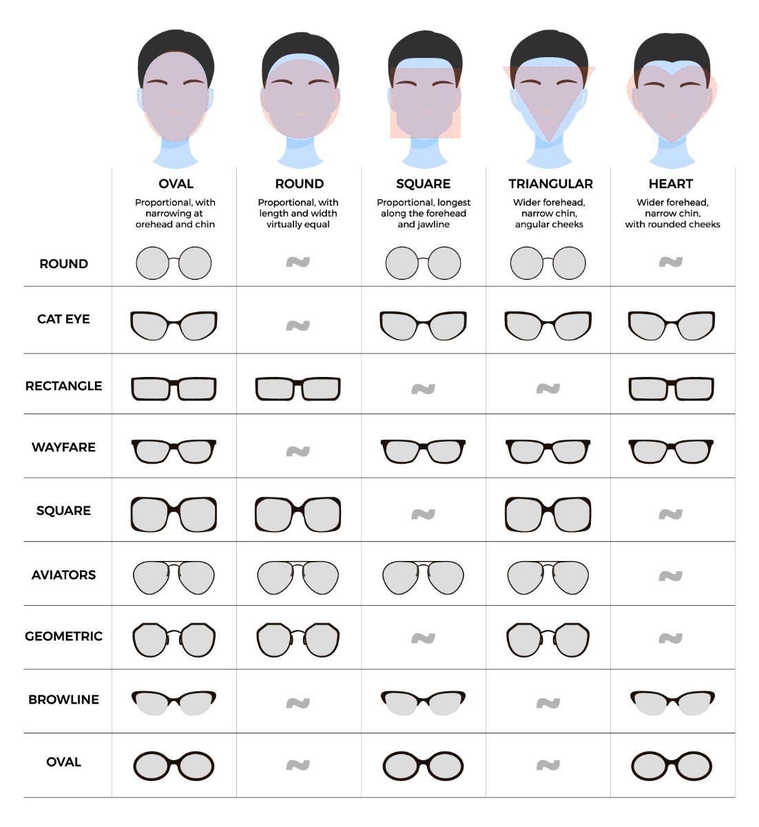 Per ogni forma del viso, ci sono montature complementari che possono aiutare a bilanciare il tuo aspetto. Alcuni telai possono accentuare o addirittura snellire determinate caratteristiche.